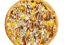 32 см/650-750 г • Томатный соус, грудинка с/к, мясо цыпленка, томат свежий, моцарелла, соус Барбекю