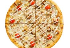 32 см/550-650 г • Филе куриное, шампиньоны, томаты свежие, соус Базилик, сыр Грана Падано, томатный соус, моцарелла, чесночное масло, орегано